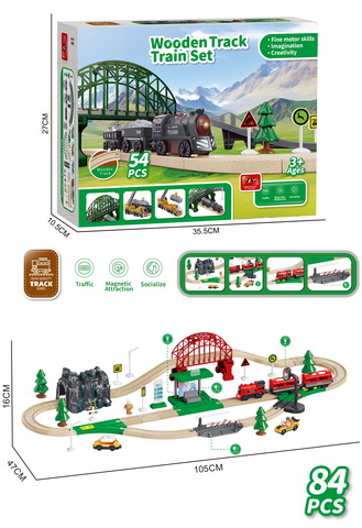 84PCS wooden railway