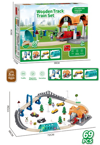 69PCS wooden railway