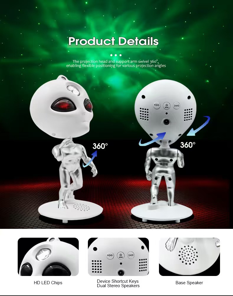 创意大眼变异外星人灯蓝牙音响夜灯星空投影氛围装饰台灯
