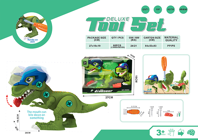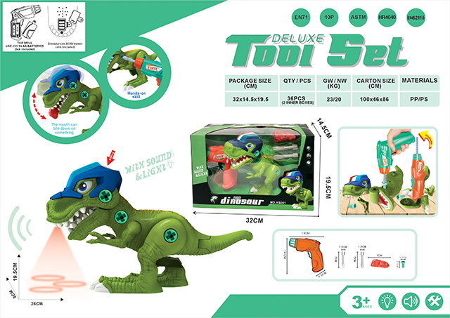 拆装声光恐龙(恐龙包含3个1.5V钮扣电池)+电动手电钻(电钻2X1.5V AA不包电)